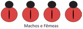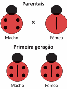 A figura apresenta a herança genética de uma característica a partir do cruzamento de insetos de uma mesma espécie.