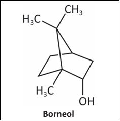 Em uma aula prática de química orgânica, um professor identificou os frascos de várias substâncias apenas por suas fórmulas moleculares. Em seguida, apresentou a representação tridimensional da molécula do borneol, um álcool secundário, conforme a figura. Ele explicou que, quando oxidado, o borneol dá origem à cânfora, uma cetona usada desde a Antiguidade como incenso e no preparo de medicamentos. Finalmente, o professor solicitou que os alunos identificassem o frasco contendo a substância cânfora.