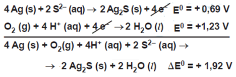 Objetos de prata escurecem em contato com compostos contendo enxofre por causa da formação de uma fina camada de sulfeto de prata. Um método simples para clarear o objeto consiste em forrar um recipiente com papel alumínio, adicionar ao recipiente uma solução aquosa de cloreto de sódio e, enfim, mergulhar o objeto de prata enegrecido. Em cerca de três minutos, a prata volta à coloração original. As seguintes semirreações e os respectivos potenciais-padrão de redução são úteis para a compreensão dos fenômenos ocorridos.