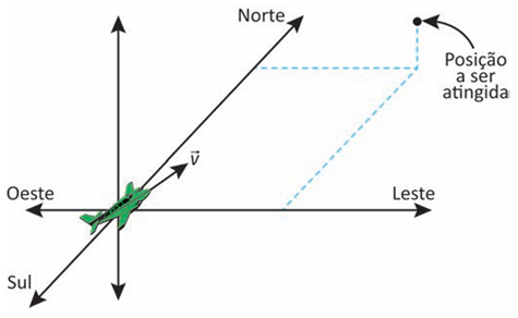 Durante a ação do vento, a velocidade v que o piloto deve estabelecer em relação ao ar para que o avião chegue à posição esperada no tempo indicado tem as componentes