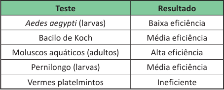 O ácido úsnico retirado de liquens apresentou grande eficácia no controle de moluscos aquáticos, assim pode ser utilizado no controle do hospedeiro intermediário da esquistossomose, ajudando na profilaxia da doença.
