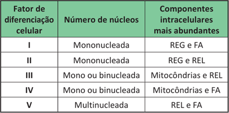Existe grande expectativa quanto ao emprego de células-tronco na terapia contra muitas doenças, uma vez que essas células podem se diferenciar em diversos tipos celulares. Um pesquisador, interessado em estudar as fibras musculares estriadas cardíacas (cardiomiócitos) obtidas de células-tronco, iniciou seu trabalho analisando a ação de cinco fatores de diferenciação celular e obteve células com as características apresentadas no quadro.